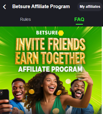 Visit Betsure Uganda and create your free affiliate account. Registration takes less than 2 minutes. - Get Your Unique Affiliate Link